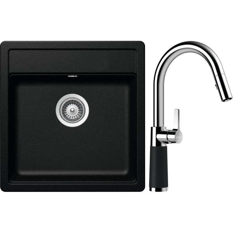 Cenově zvýhodněný set dřezu a baterie Schock S10-7 - obsahuje granitový jednodřez Mono N-100S Magma a baterii se sprchou SC-520.120 Magma.