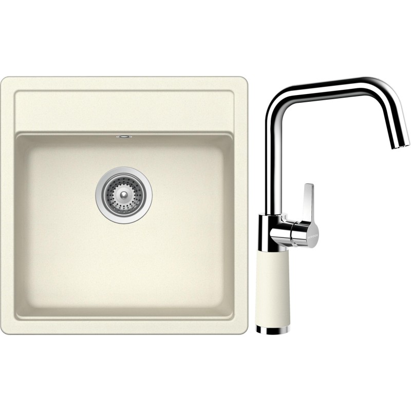 Cenově zvýhodněný set dřezu a baterie Schock S10-8 - obsahuje granitový jednodřez Mono N-100S Magnolia a baterii SC-530 Magnolia.