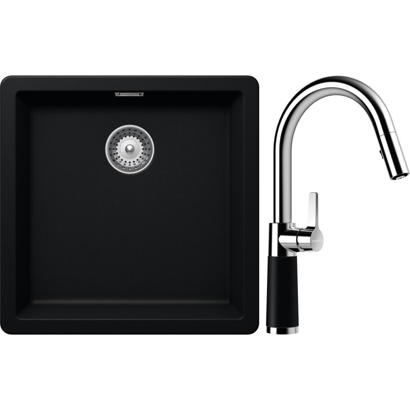 Cenově zvýhodněný set dřezu a baterie Schock S11-7 - obsahuje granitový jednodřez Greenwich N-100 Puro a baterii se sprchou SC-520.120 Puro.