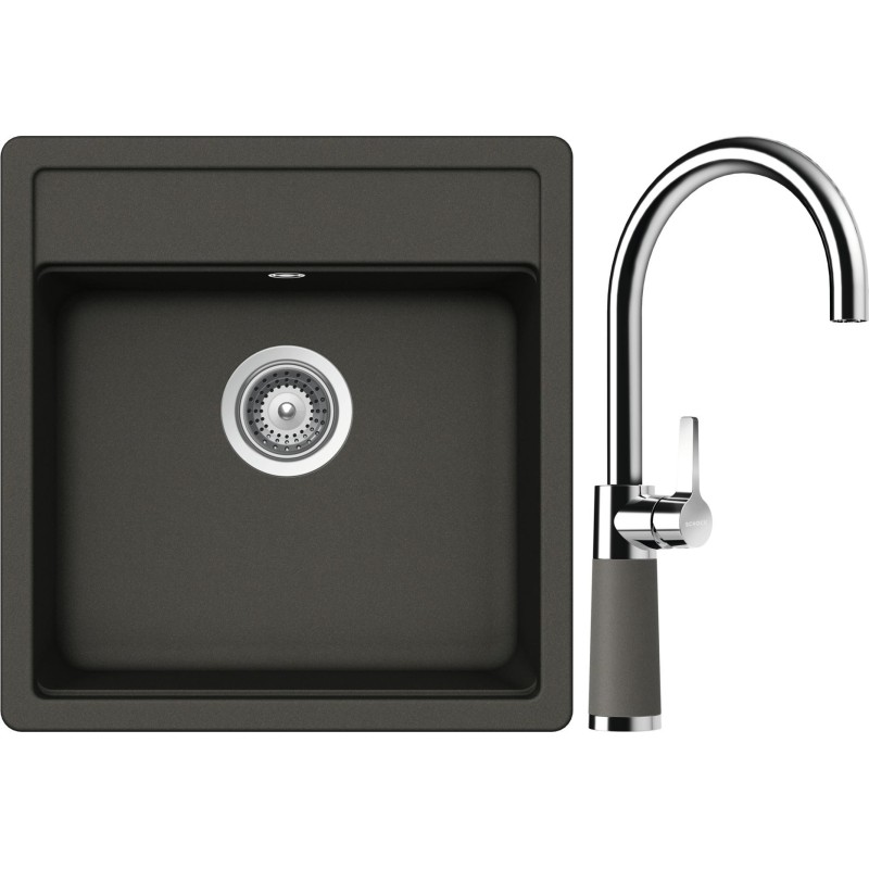 Cenově zvýhodněný set dřezu a baterie Schock S23-8 - obsahuje granitový jednodřez Nemo N-100S Asphalt a baterii SC-520 Asphalt.