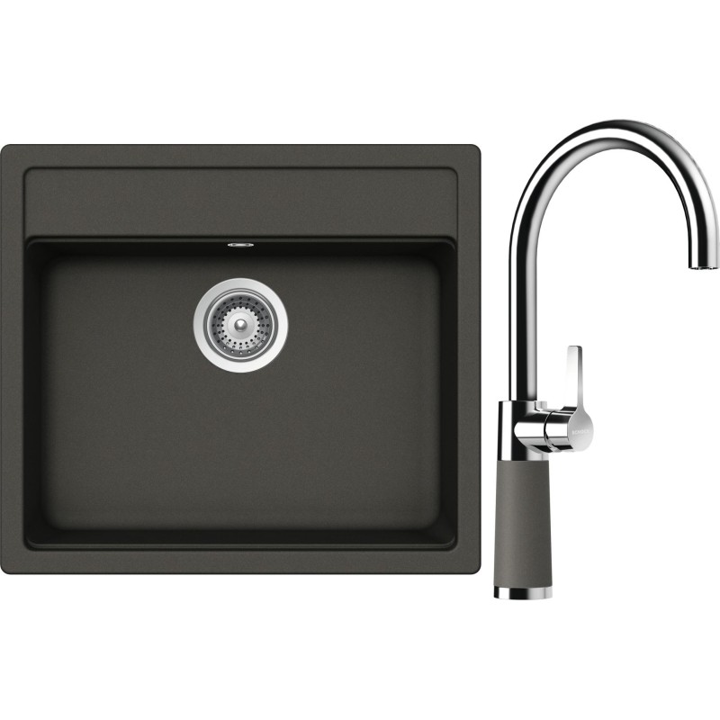 Cenově zvýhodněný set dřezu a baterie Schock S24-8 - obsahuje granitový jednodřez Nemo N-100 Asphalt a baterii SC-520 Asphalt.