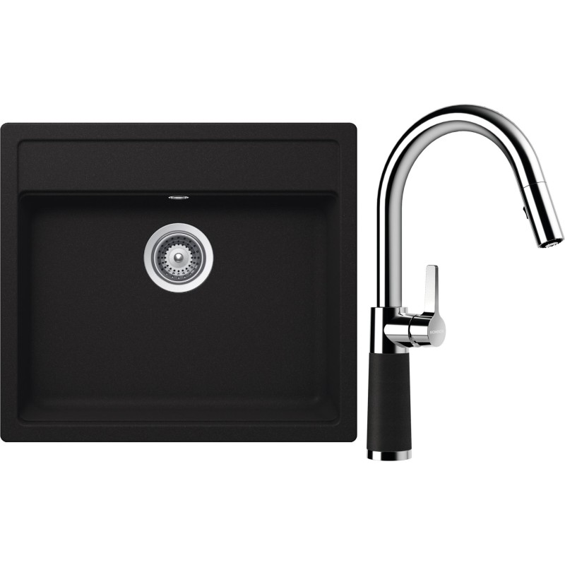 Cenově zvýhodněný set dřezu a baterie Schock S24-9 - obsahuje granitový jednodřez Nemo N-100 Onyx a baterii se sprchou SC-520.120 Onyx.
