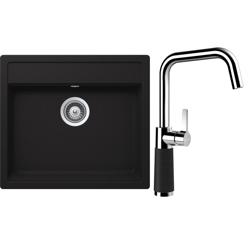Cenově zvýhodněný set dřezu a baterie Schock S24-10 - obsahuje granitový jednodřez Nemo N-100 Onyx a baterii SC-530 Onyx.