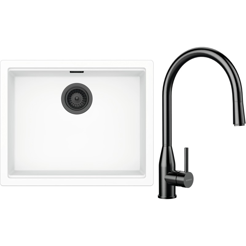 Cenově zvýhodněný set dřezu a baterie Schock S32-10 - obsahuje granitový jednodřez Kiruna N-100L Day, baterii s vytahovací koncovkou Kavus.120 Gunmetal brushed a části dřezu v provedení Gunmetal brushed.