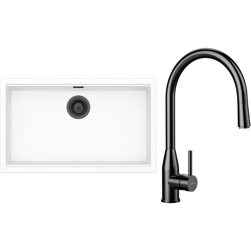 Cenově zvýhodněný set dřezu a baterie Schock S33-10 - obsahuje granitový jednodřez Kiruna N-100XL Day, baterii s vytahovací koncovkou Kavus.120 Gunmetal brushed a části dřezu v provedení Gunmetal brushed.