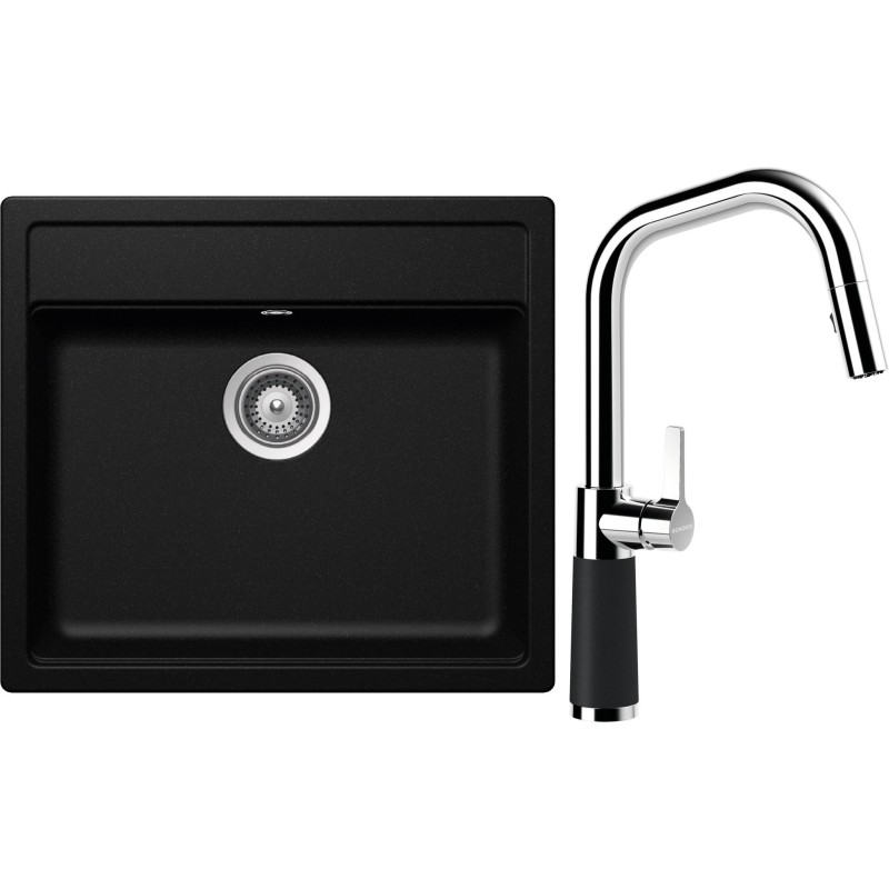 Cenově zvýhodněný set dřezu a baterie Schock S9-9 - obsahuje granitový jednodřez Mono N-100 Magma a baterii se sprchou SC-530.120 Magma.