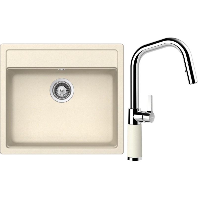 Cenově zvýhodněný set dřezu a baterie Schock S9-9 - obsahuje granitový jednodřez Mono N-100 Magnolia a baterii se sprchou SC-530.120 Magnolia.