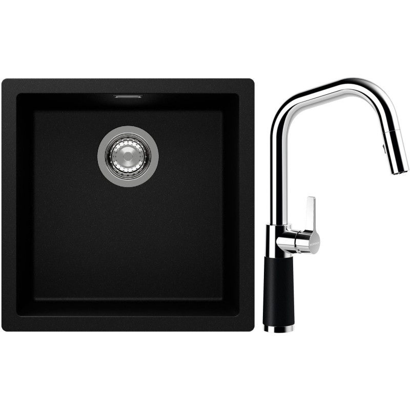 Cenově zvýhodněný set dřezu a baterie Schock S13-9 - obsahuje granitový jednodřez Kaia N-100 Puro a baterii se sprchou SC-530.120 Puro.