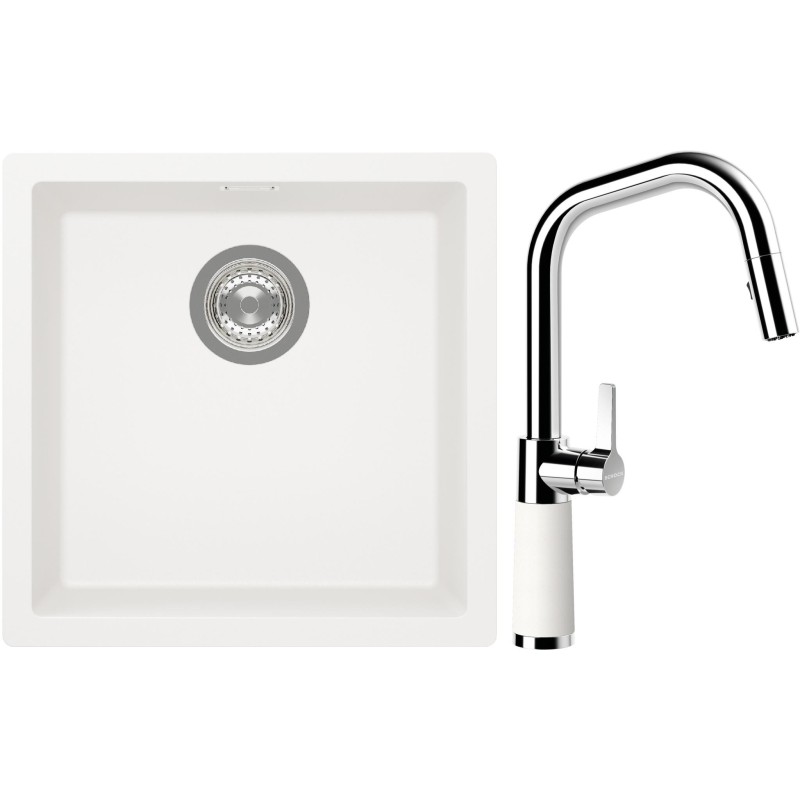 Cenově zvýhodněný set dřezu a baterie Schock S13-9 - obsahuje granitový jednodřez Kaia N-100 Polaris a baterii se sprchou SC-530.120 Polaris.