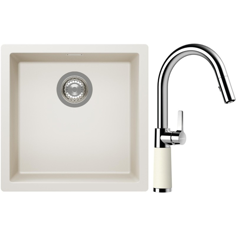 Cenově zvýhodněný set dřezu a baterie Schock S13-7 - obsahuje granitový jednodřez Kaia N-100 Magnolia a baterii se sprchou SC-520.120 Magnolia.