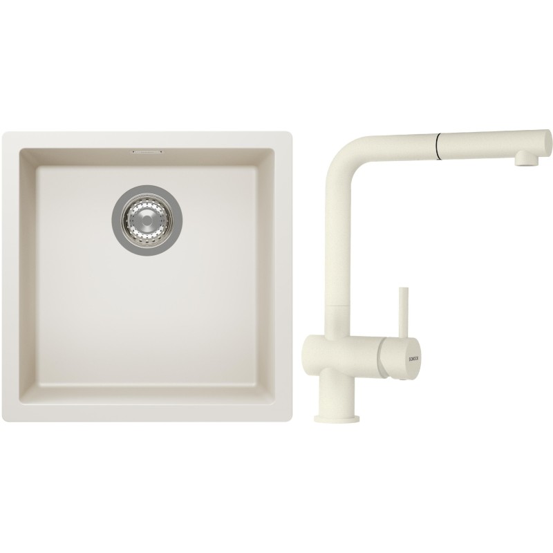 Cenově zvýhodněný set dřezu a baterie Schock S13-2 - obsahuje granitový jednodřez Kaia N-100 Magnolia a baterii s vytahovací koncovkou Epos.120 Magnolia.