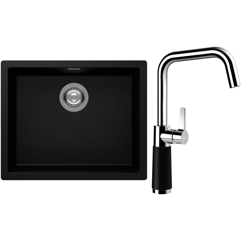 Cenově zvýhodněný set dřezu a baterie Schock S14-8 - obsahuje granitový jednodřez Kaia N-100L Puro a baterii SC-530 Puro.