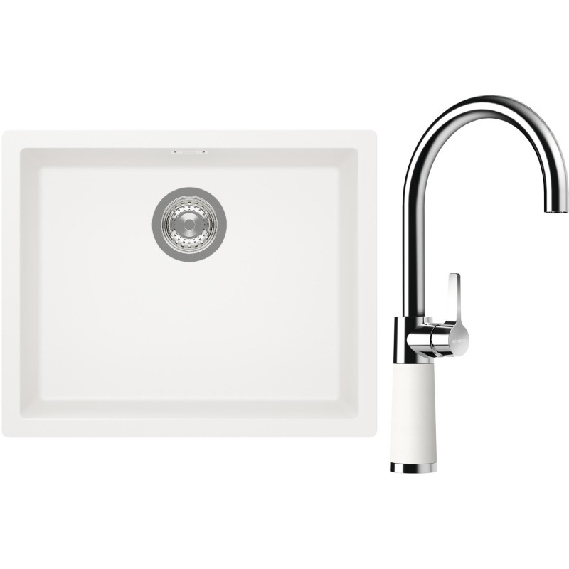 Cenově zvýhodněný set dřezu a baterie Schock S14-6 - obsahuje granitový jednodřez Kaia N-100L Polaris a baterii SC-520 Polaris.