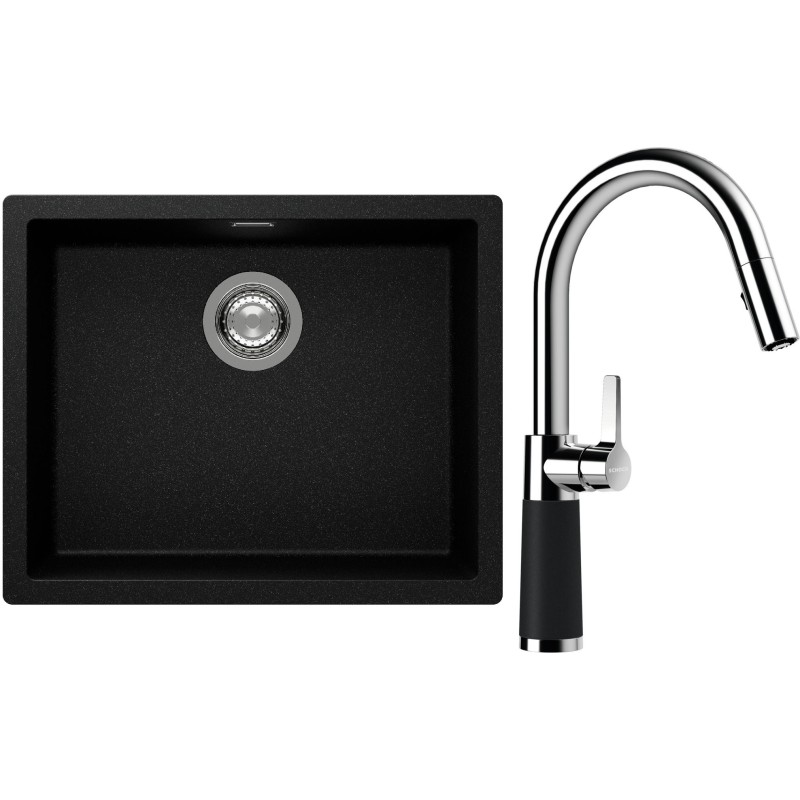 Cenově zvýhodněný set dřezu a baterie Schock S14-7 - obsahuje granitový jednodřez Kaia N-100L Magma a baterii se sprchou SC-520.120 Magma.