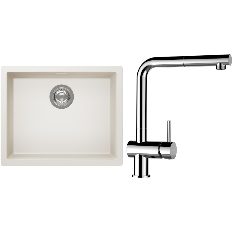 Cenově zvýhodněný set dřezu a baterie Schock S14-13 - obsahuje granitový jednodřez Kaia N-100L Magnolia a baterii s vytahovací koncovkou Epos.120 Chrom.
