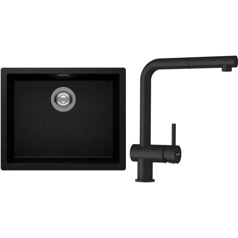 Cenově zvýhodněný set dřezu a baterie Schock S14-2 - obsahuje granitový jednodřez Kaia N-100L Magma a baterii s vytahovací koncovkou Epos.120 Magma.