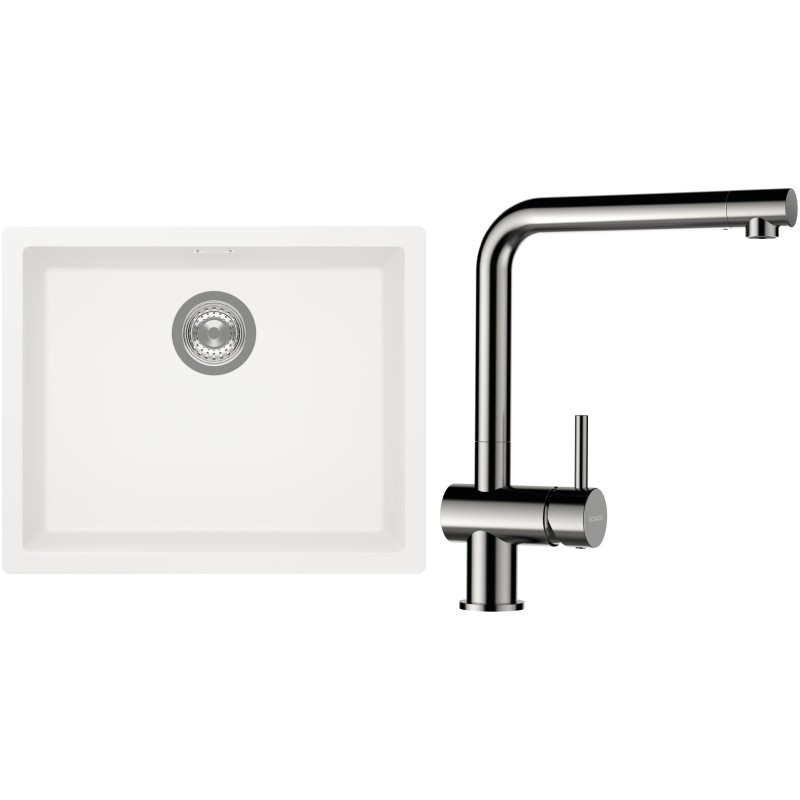 Cenově zvýhodněný set dřezu a baterie Schock S14-3 - obsahuje granitový jednodřez Kaia N-100L Polaris a baterii Epos Nerezový vzhled.