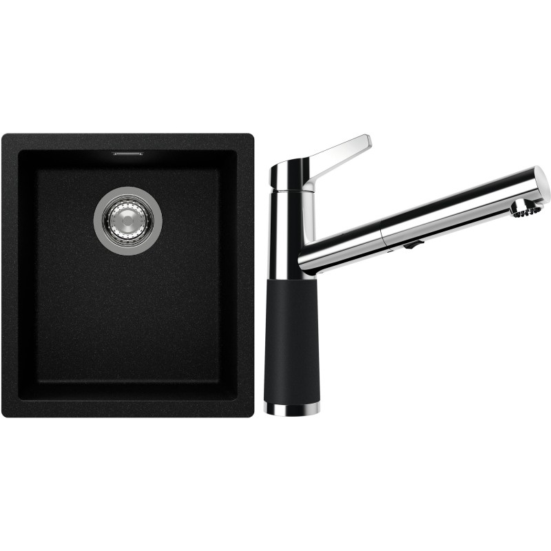 Cenově zvýhodněný set dřezu a baterie Schock S12-5 - obsahuje granitový jednodřez Kaia N-100S Magma a baterii se sprchou SC-510.120 Magma.
