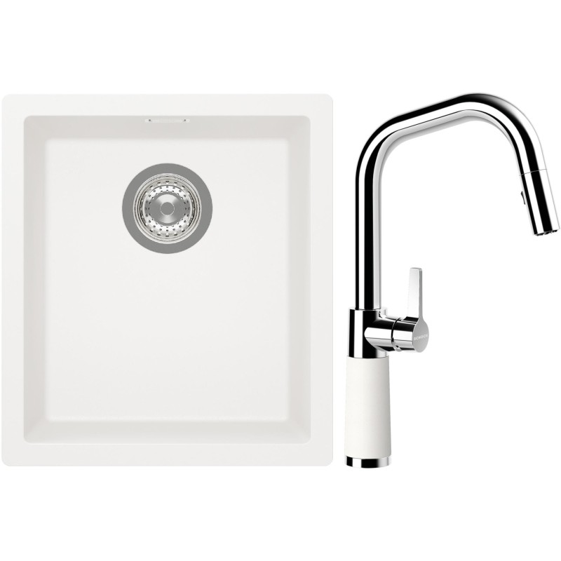 Cenově zvýhodněný set dřezu a baterie Schock S12-9 - obsahuje granitový jednodřez Kaia N-100S Polaris a baterii se sprchou SC-530.120 Polaris.