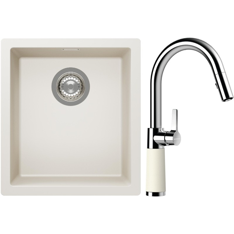 Cenově zvýhodněný set dřezu a baterie Schock S12-7 - obsahuje granitový jednodřez Kaia N-100S Magnolia a baterii se sprchou SC-520.120 Magnolia.
