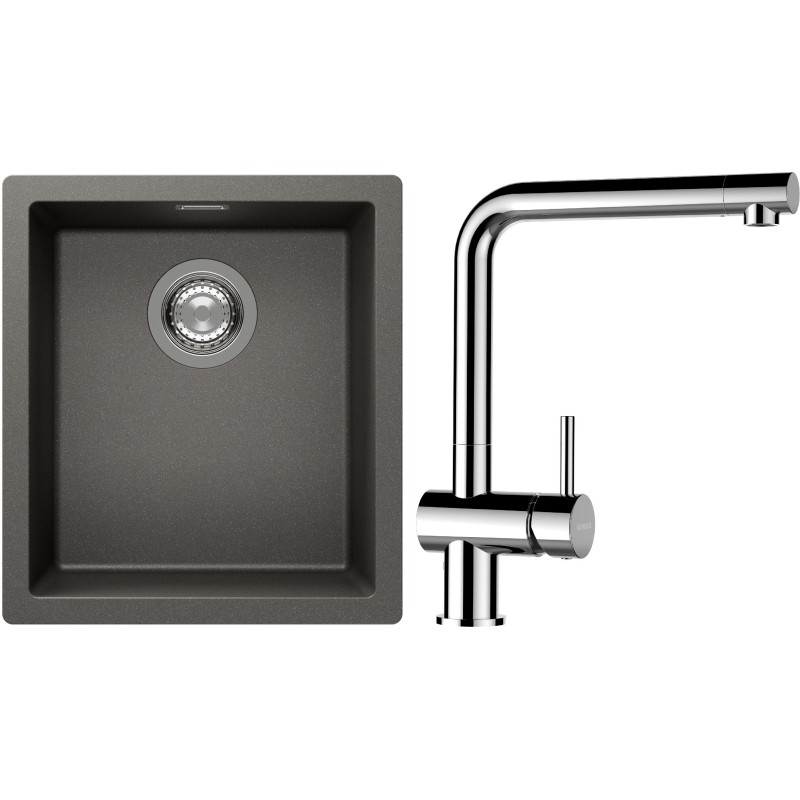 Cenově zvýhodněný set dřezu a baterie Schock S12-12 - obsahuje granitový jednodřez Kaia N-100S Silverstone a baterii Epos Chrom.