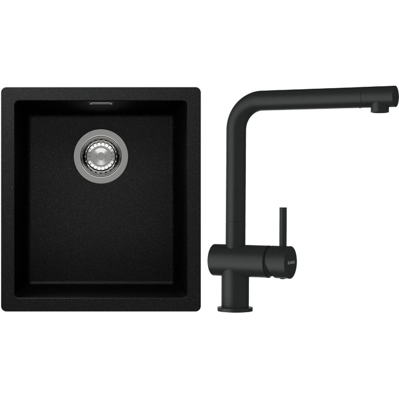 Cenově zvýhodněný set dřezu a baterie Schock S12-1 - obsahuje granitový jednodřez Kaia N-100S Magma a baterii Epos Magma.