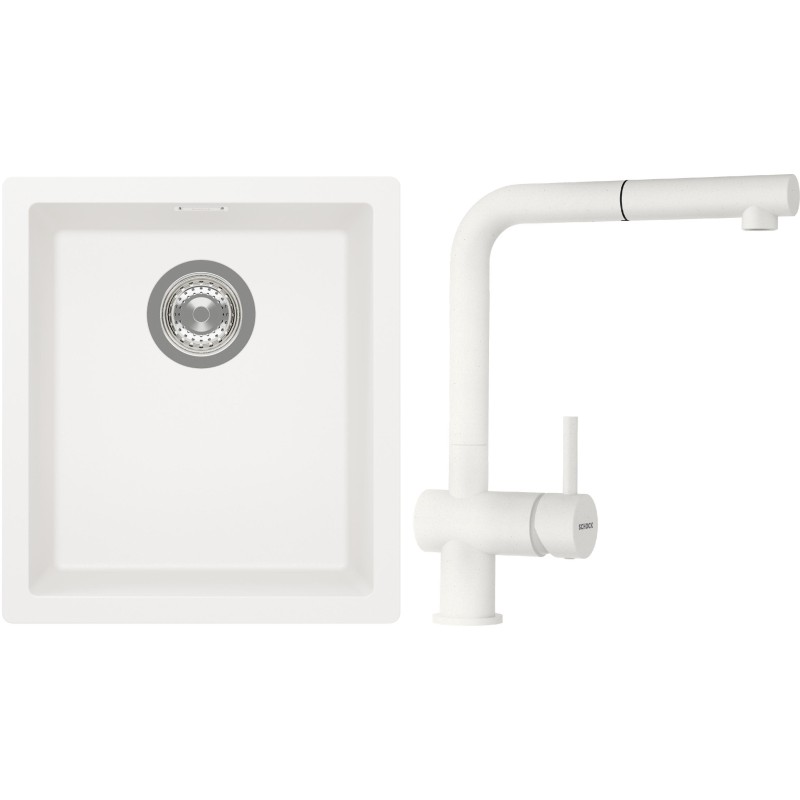 Cenově zvýhodněný set dřezu a baterie Schock S12-2 - obsahuje granitový jednodřez Kaia N-100S Polaris a baterii s vytahovací koncovkou Epos.120 Polaris.