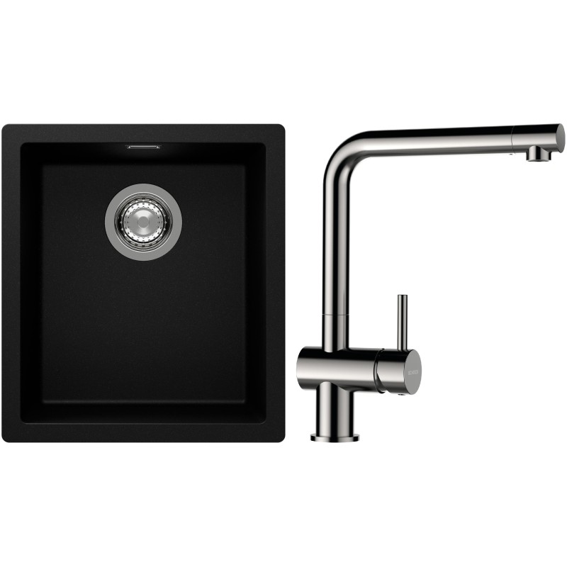 Cenově zvýhodněný set dřezu a baterie Schock S12-3 - obsahuje granitový jednodřez Kaia N-100S Puro a baterii Epos Nerezový vzhled.