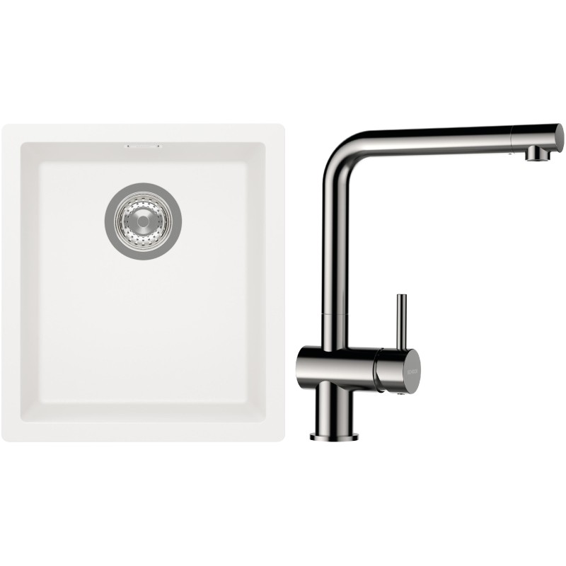 Cenově zvýhodněný set dřezu a baterie Schock S12-3 - obsahuje granitový jednodřez Kaia N-100S Polaris a baterii Epos Nerezový vzhled.