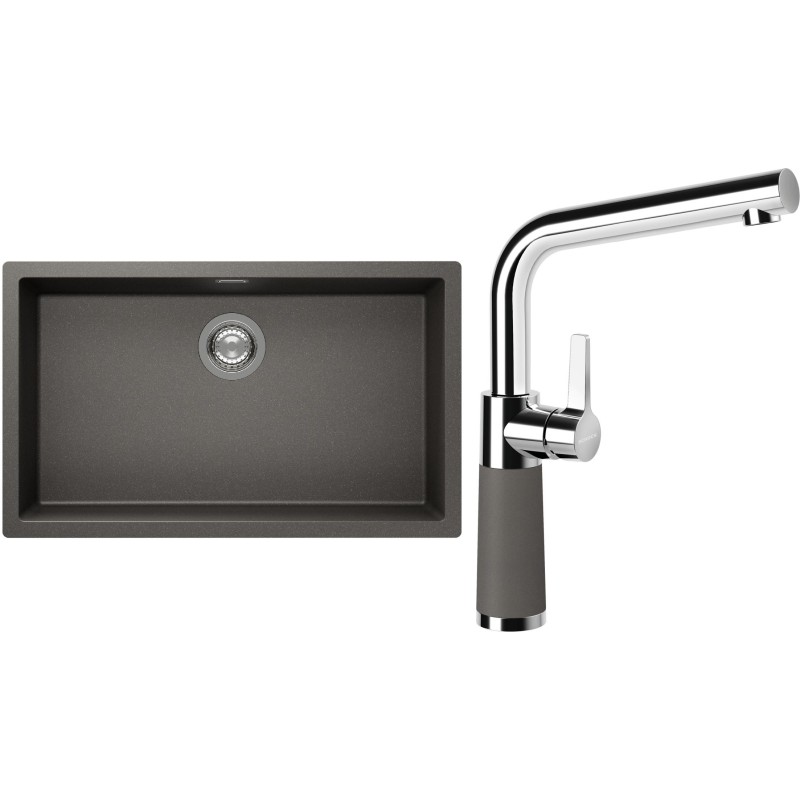 Cenově zvýhodněný set dřezu a baterie Schock S15-10 - obsahuje granitový jednodřez Kaia N-100XL Silverstone a baterii SC-540 Silverstone.