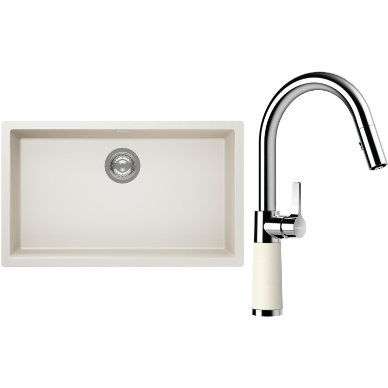 Cenově zvýhodněný set dřezu a baterie Schock S15-7 - obsahuje granitový jednodřez Kaia N-100XL Magnolia a baterii se sprchou SC-520.120 Magnolia.