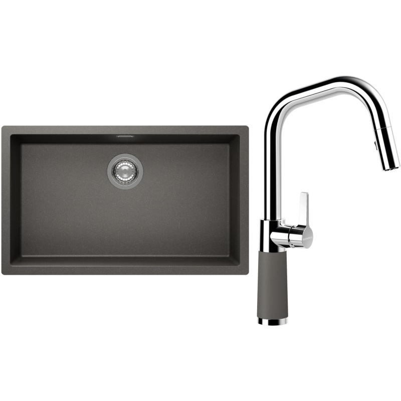 Cenově zvýhodněný set dřezu a baterie Schock S15-9 - obsahuje granitový jednodřez Kaia N-100XL Silverstone a baterii se sprchou SC-530.120 Silverstone.