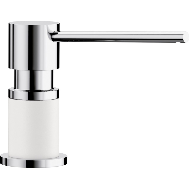 Dávkovač saponátu do kuchyňského dřezu, objem 300 ml, provedení Chrom/Bílá, vrchní plnění, standardní otvor 35 mm (stejný jako pro baterii).