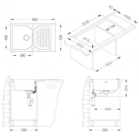 Součástí dřezu je kompletní příslušenství k montáži. (výpusť, sifon, příchytky atd.) Není třeba nic dokupovat.