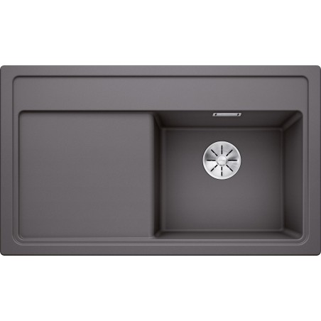 Granitový dřez s odkapem, provedení Šedá skála, vana vpravo, rozměr 860 x 510 mm, vana 400 x 345 x 190 mm, horní montáž, minimálně 45 cm skříňka, s excentrem.