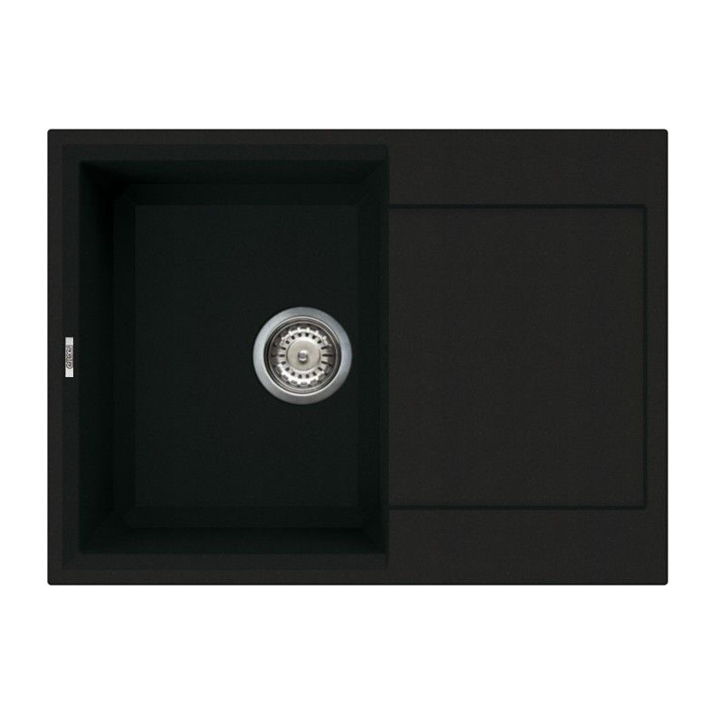 Granitový dřez s odkapem, provedení Full Black G40, otočný, rozměr 680 x 500 mm, vana 340 x 430 x 210 mm, horní montáž, minimálně 45 cm skříňka.