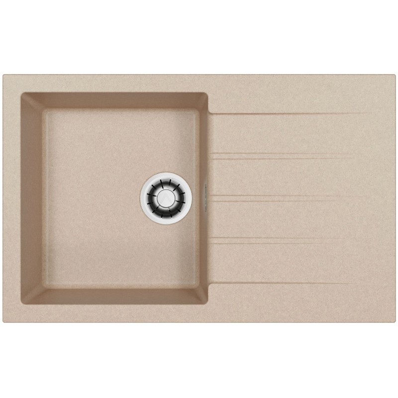 Granitový dřez s odkapem, provedení Ivory A20, otočný, rozměr 790 x 500 mm, vana 375 x 425 x 200 mm, horní montáž, minimálně 50 cm skříňka.