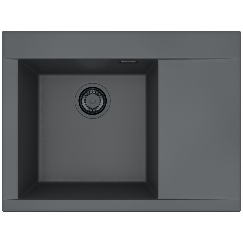 Granitový dřez s odkapem, provedení Deep Black A90 s černými komponenty, levý, rozměr 680 x 515 mm, vana 400 x 400 x 198 mm, horní montáž, minimálně 50 cm skříňka.