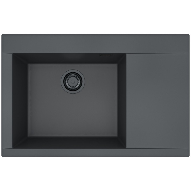 Granitový dřez s odkapem, provedení Deep Black A90 s černými komponenty, levý, rozměr 790 x 515 mm, vana 480 x 400 x 198 mm, horní montáž, minimálně 60 cm skříňka.