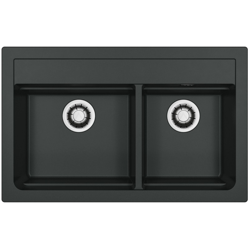 Granitový dvojdřez, provedení Deep Black A90, rozměr 790 x 500 mm, vana 390 x 340 x 195 mm a 300 x 340 x 195 mm, horní nebo spodní montáž, minimálně 80 cm skříňka.