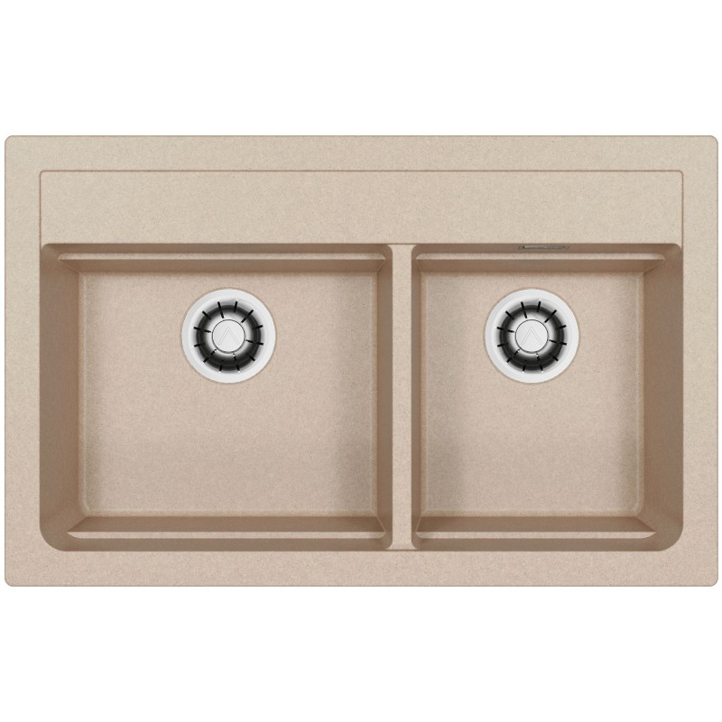 Granitový dvojdřez, provedení Ivory A20, rozměr 790 x 500 mm, vana 390 x 340 x 195 mm a 300 x 340 x 195 mm, horní nebo spodní montáž, minimálně 80 cm skříňka.
