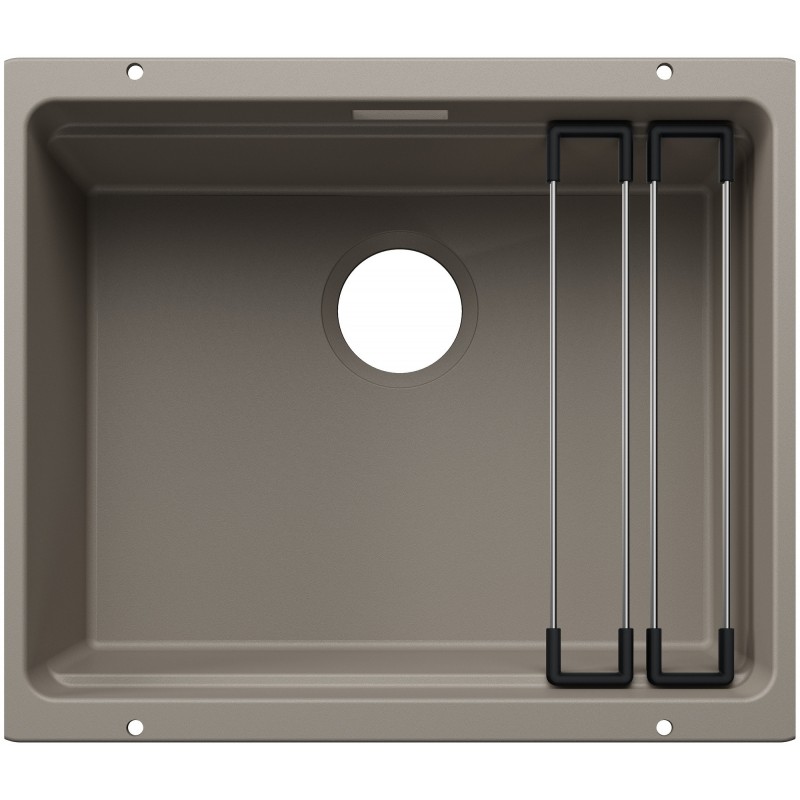 Hranatý granitový jednodřez, provedení Tartufo, rozměr 530 x 460 mm, vana 500 x 370 x 200 mm, spodní montáž, minimálně 60 cm skříňka. V ceně dřezu jsou nerezové kolejničky.