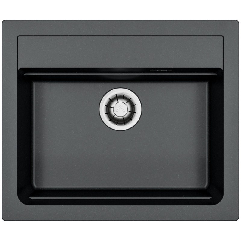Hranatý granitový jednodřez, provedení Carbon A91, rozměr 590 x 500 mm, vana 510 x 340 x 195 mm, horní nebo spodní montáž, minimálně 60 cm skříňka.