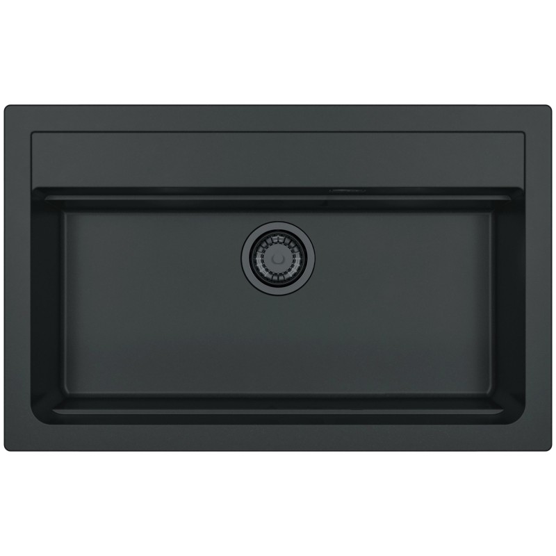 Hranatý granitový jednodřez, provedení Deep Black A90 s černými komponenty, rozměr 790 x 500 mm, vana 710 x 340 x 195 mm, horní nebo spodní montáž, minimálně 80 cm skříňka, s excentrem, 1 otvor z výroby.