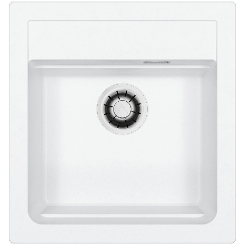 Hranatý granitový jednodřez, provedení Glacier A10, rozměr 470 x 500 mm, vana 390 x 340 x 195 mm, horní nebo spodní montáž, minimálně 45 cm skříňka, s excentrem, 1 otvor z výroby.
