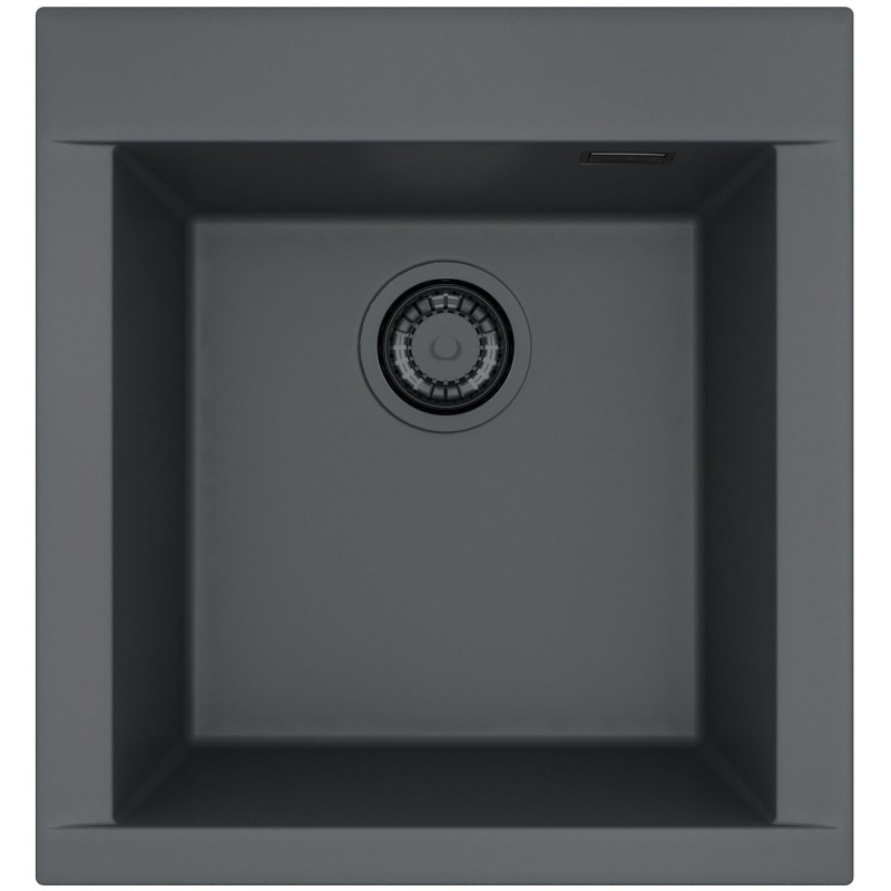 Hranatý granitový jednodřez, provedení Deep Black A90 s černými komponenty, rozměr 480 x 515 mm, vana 390 x 400 x 198 mm, horní montáž, minimálně 45 cm skříňka.