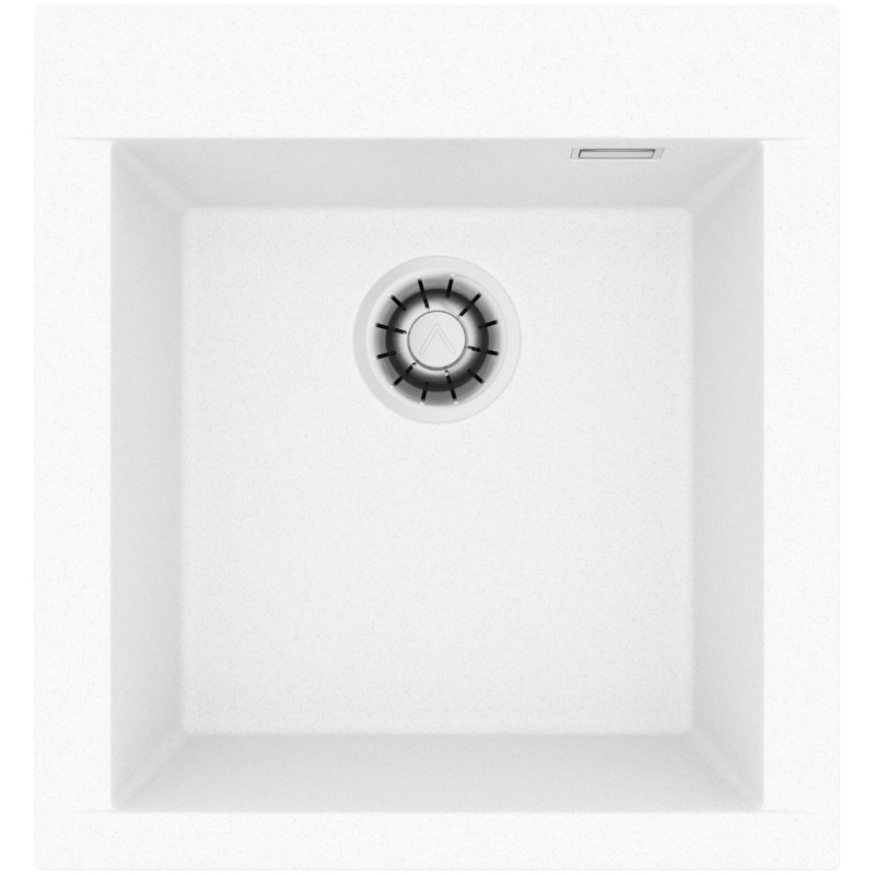 Hranatý granitový jednodřez, provedení Glacier A10, rozměr 480 x 515 mm, vana 390 x 400 x 198 mm, horní montáž, minimálně 45 cm skříňka.