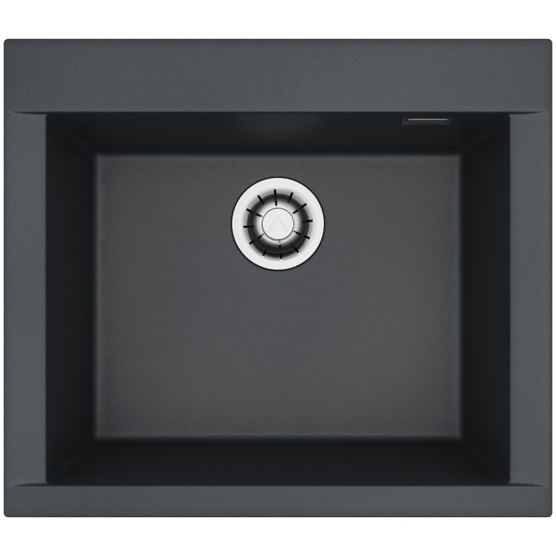 Hranatý granitový jednodřez, provedení Deep Black A90, rozměr 590 x 515 mm, vana 500 x 400 x 198 mm, horní montáž, minimálně 60 cm skříňka.