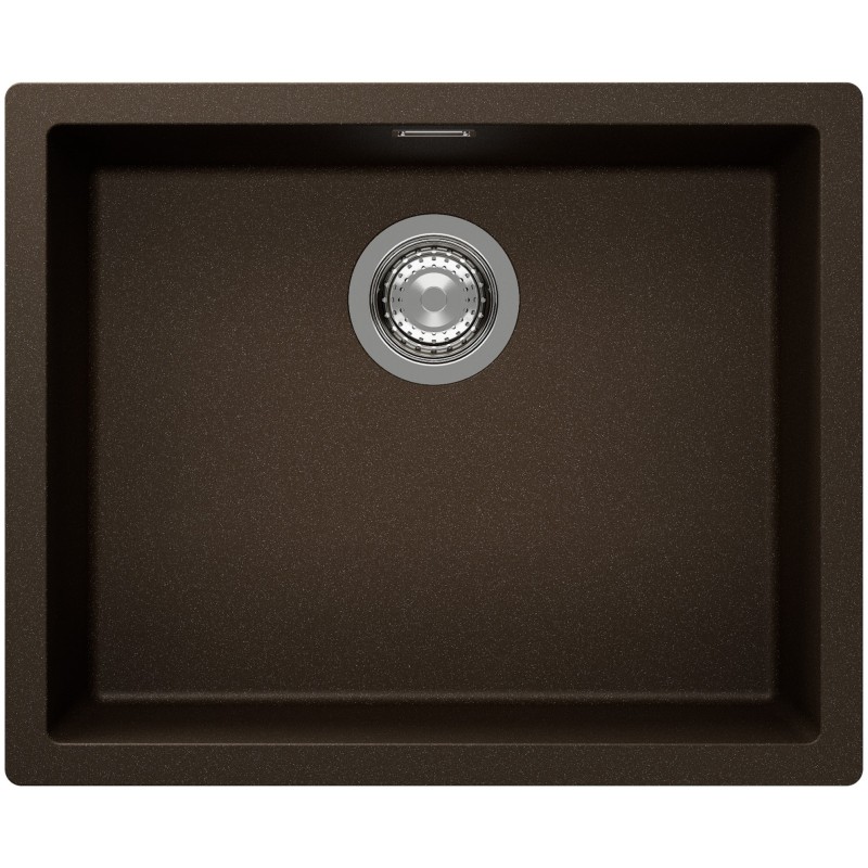 Hranatý granitový jednodřez, provedení Bronze, rozměr 556 x 456 mm, vana 500 x 400 x 200 mm, horní montáž, minimálně 60 cm skříňka, s excentrem.