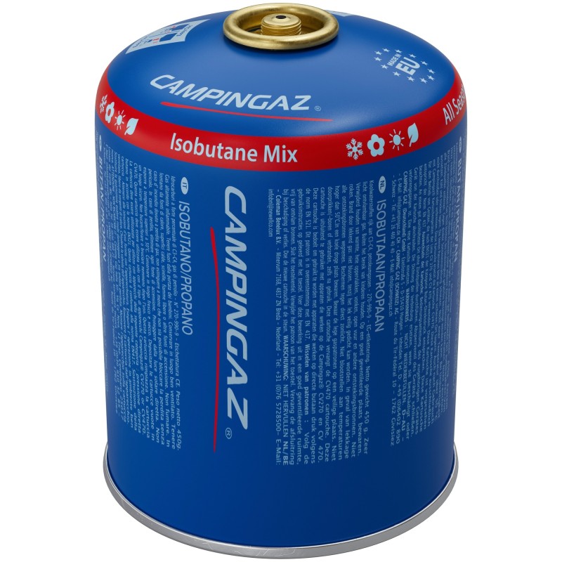 Plynová kartuše s celoroční náplní umožňující vaření a grilování až do –18 °C. Vysoce bezpečný samouzavírací ventil, který lze znovu odpojit a připojit a umožňuje opětovné používání kartuše například na jiném spotřebiči, i když není prázdná. Obsahuje 85 % butanu/15 % propanu. Průměr 9 cm, výška 10,5 cm, hmotnost 440 g, 1 ks.